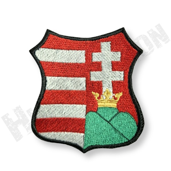 Prémium minőségű, 8,8 cm x 7,7 cm nagyságú, hímzett, Kossuth címer felvarró a Hun Division kínálatában.