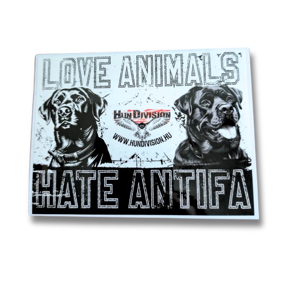Prémium minőségű, erős tapadású, 10 x 7,5 cm nagyságú love animals matrica a Hun Division webáruházában.