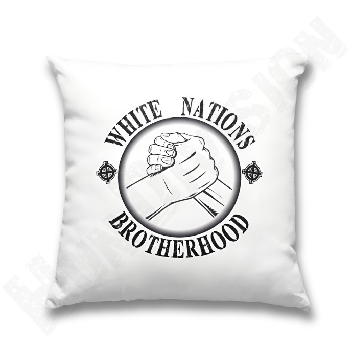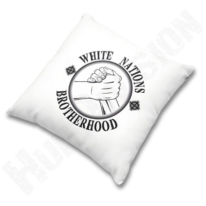 White Nations Brotherhood (fehér nemzetek testvérisége) mintával ellátott, 35×35 cm méretű díszpárna a Hun Division kínálatából.